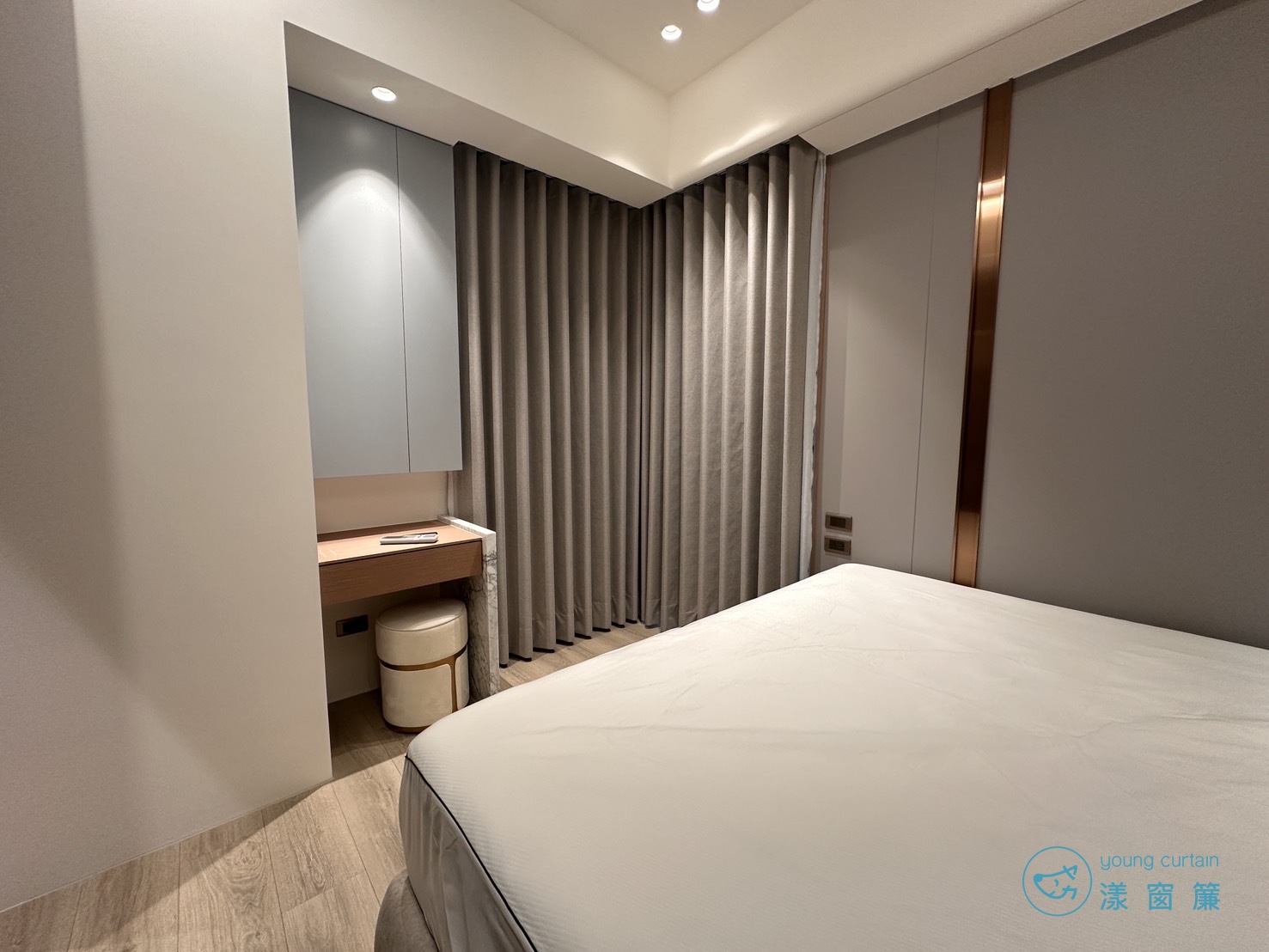 落地窗摺景簾專為大面積窗戶與落地窗設計,以俐落的摺疊結構搭配寬幅布面,兼顧採光、隱私與整體視覺比例,讓窗景成為空間中的設計主角,同時提升室內質感與舒適度。
