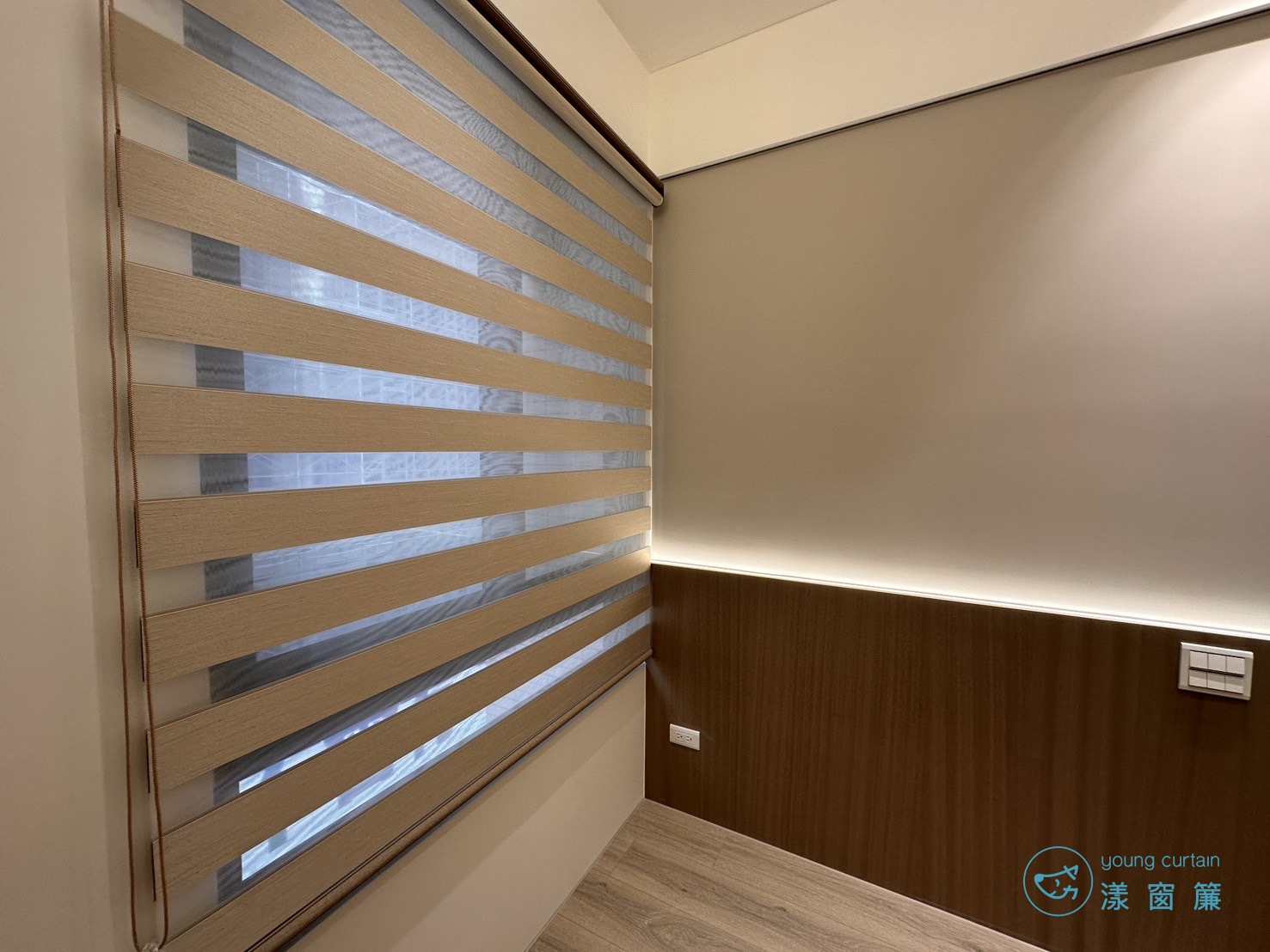 調光簾結合捲簾與紗簾的設計概念,透過透明紗帶與遮蔽布帶交錯排列,可依需求自由調整光線進入的角度與明暗程度,在採光與隱私之間取得理想平衡,是現代居家與商業空間中兼具機能與美感的窗簾選擇。
