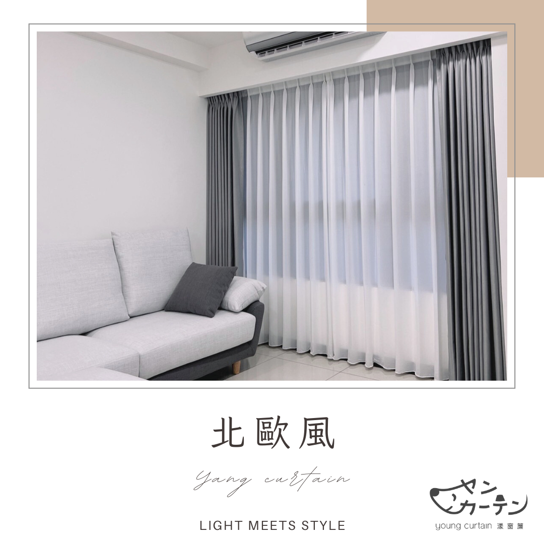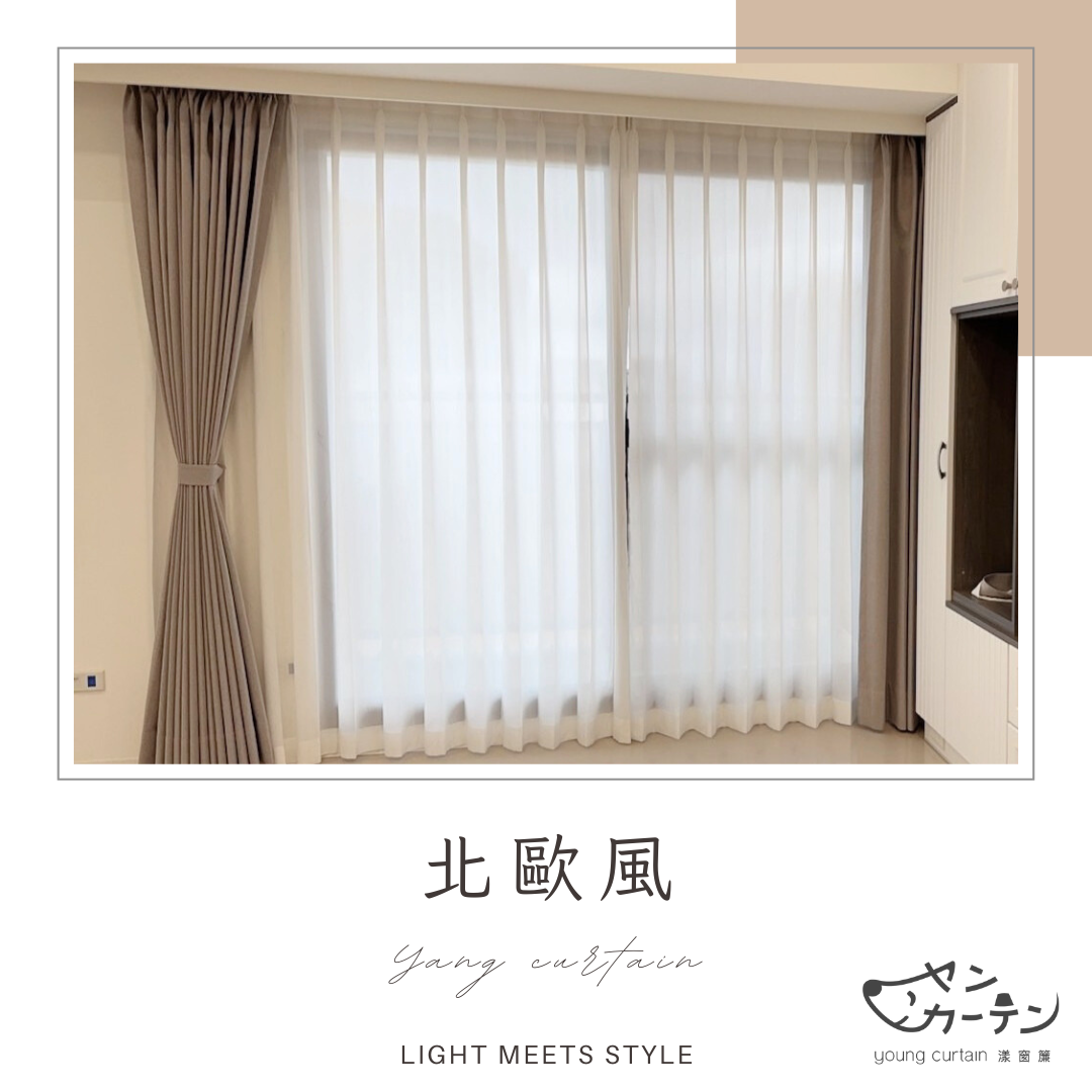 北歐風最常見為布簾加紗簾的雙層搭配。