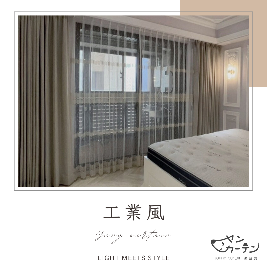 工業風窗簾的核心精神在於「原始、俐落、機能感與層次對比」,透過色彩、材質與線條的搭配,讓空間在粗獷中保有舒適與生活感。