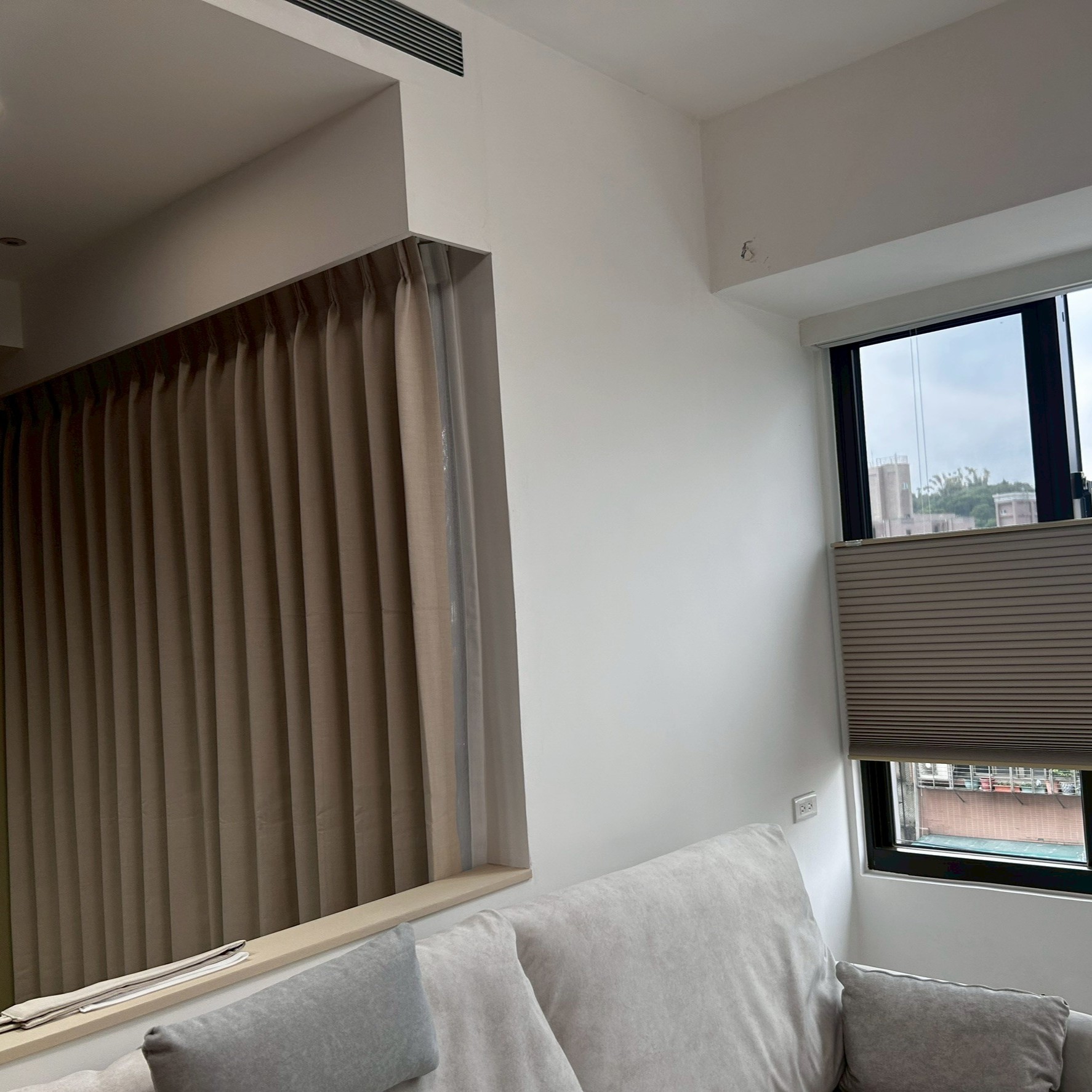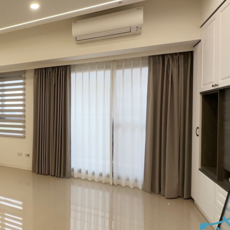 大坪數客廳 → 奶茶色作主色窗簾,增加層次感